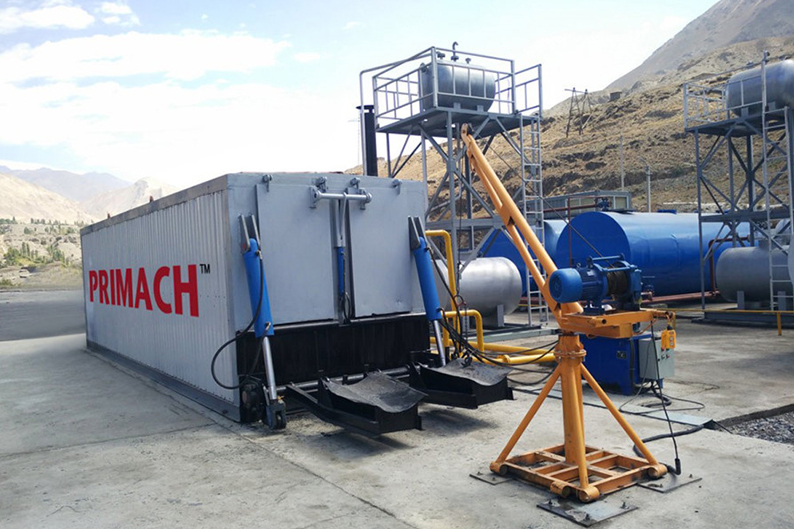Жабық құрылыс және минималды ластану. Ол қапшықтағы асфальтты толықтай ерітіп, асфальттың қалдықтарын азайтуға мүмкіндік береді. Бұл жабық құрылым экологиялық таза.